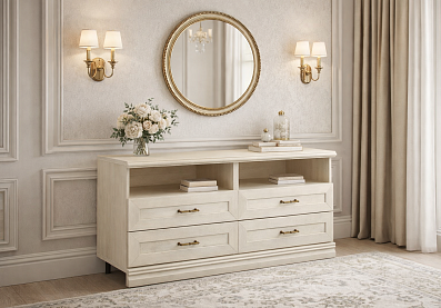Меняем у дочки в спальне мебель на более взрослую. Выбрали стиль Изотта, тумбу для начала купили. Очень удобная оказалась. И смотрится нарядно. Ящики глубокие, вместительные, полочек тоже хватает. По размерам очень удобно встала вдоль стены. Сборка качественная, никаких косяков не выявлено. И доставка не подвела, привезли в оговоренное время, не пришлось второй раз с работы опрашиваться.