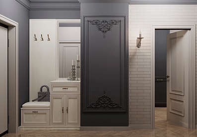 - Для хранения в спальне есть четыре удобных шкафа, один из которых с двумя зеркалами. Благодаря этому вы можете увидеть свой образ сразу после переодевания, не выходя в ванную или коридор;