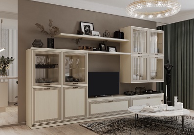 Чтобы сделать интерьер более завершенным, вы можете дополнительно приобрести металлические аксессуары в бронзовых оттенках и абстрактные постеры с яркими акцентами. Для большего удобства композицию можно завершить мягким пуфом или банкеткой в тон мебели. Конечно же, не забудьте про туалетный столик, который сделает утренние и вечерние ритуалы еще приятнее.
