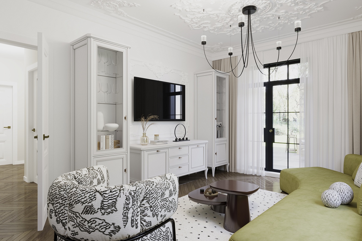 – описание: размер 214.8x287x50.5 см, цвет бело-серый, назначение для гостиной, стиль неоклассика.
