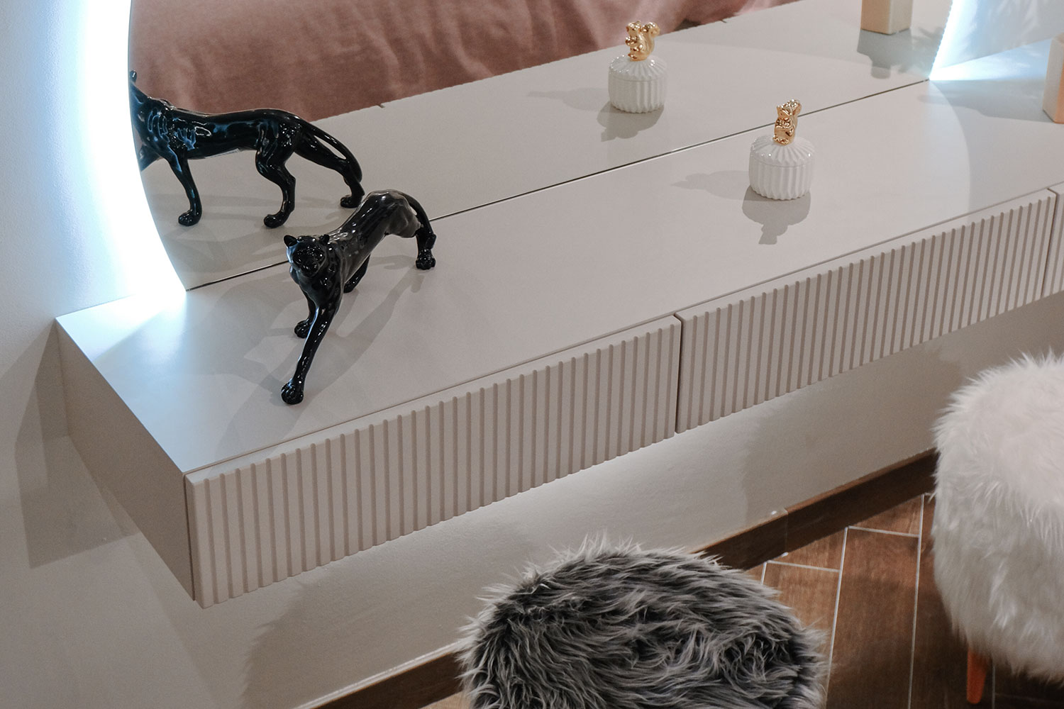 - Внимание! Открывание ящиков происходит путем захвата фасада снизу, поэтому нельзя навешивать вплотную снизу другие модули коллекции Дольче (открывание фасадов будет затруднительным);