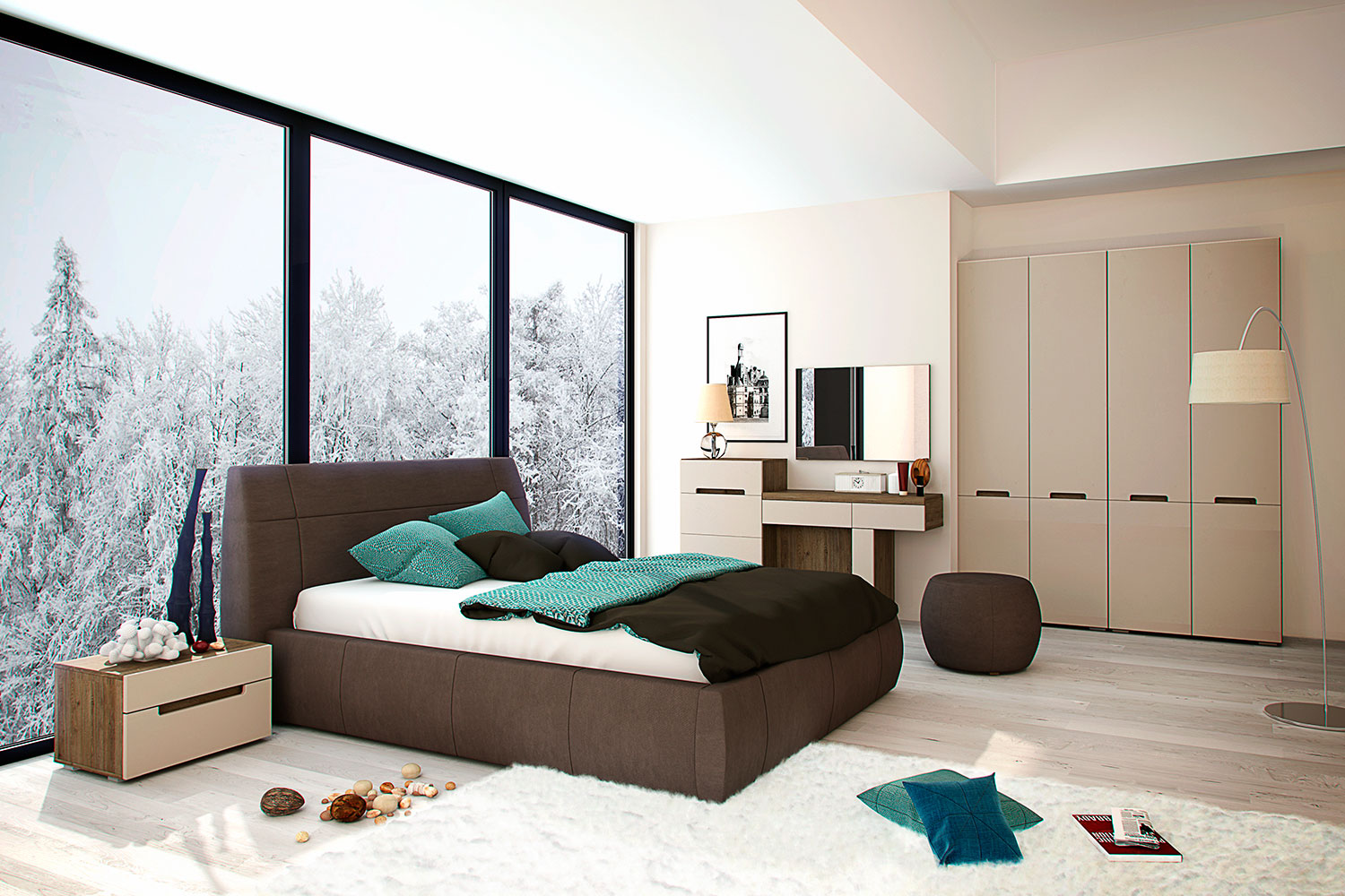 - Обивка кровати и пуфа - ткань Verona 84 Grey Brown;